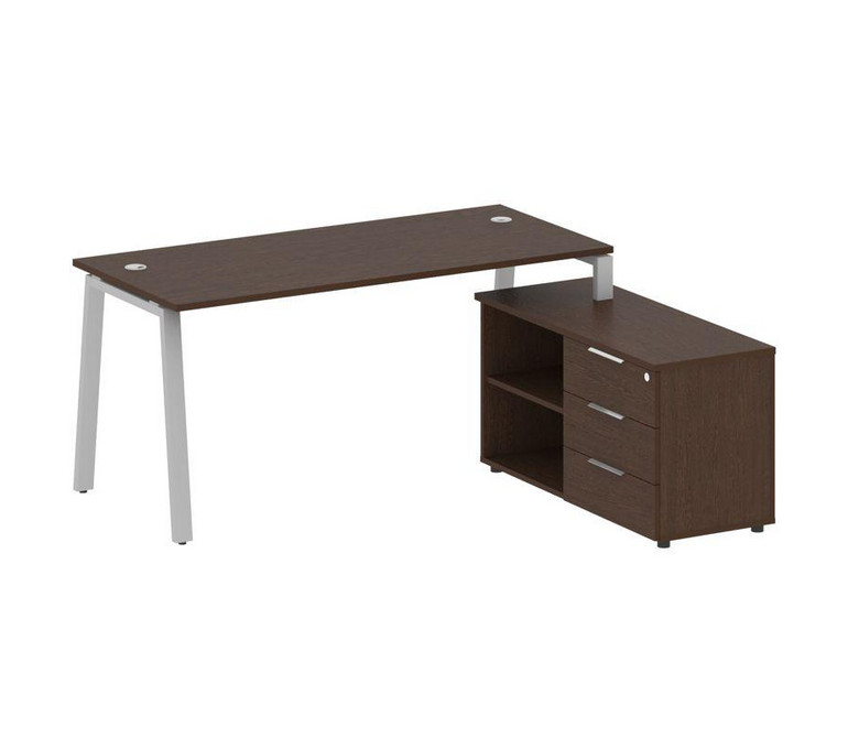 Metal System Рабочая станция с тумбой на А-образном м/к БА.РС-СТС-2.4 (R) Венге Цаво/Металл Серый 17