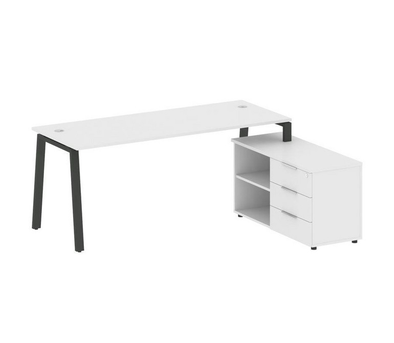 Metal System Рабочая станция с тумбой на А-образном м/к БА.РС-СТС-2.5 (R) Белый/Металл Антрацит 1900
