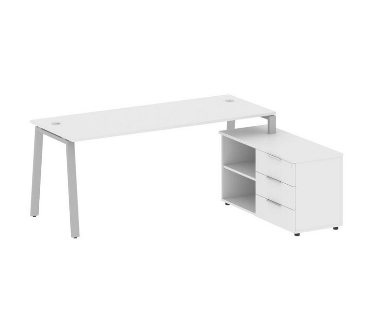Metal System Рабочая станция с тумбой на А-образном м/к БА.РС-СТС-2.5 (R) Белый/Металл Серый 1900*15