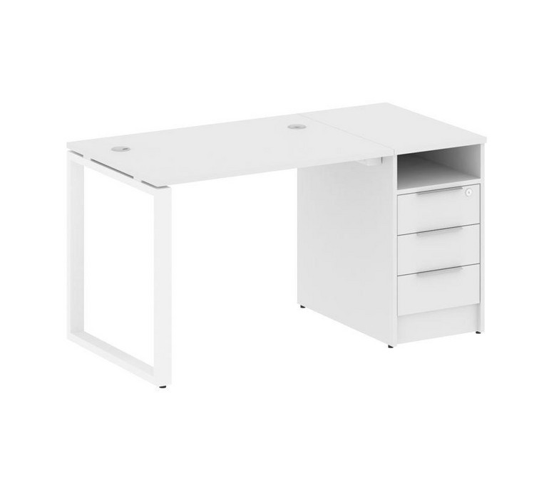 Metal System Рабочая станция с тумбой на О-образном м/к БО.РС-СТП-1.1 Белый/Металл Белый 1412*720*75