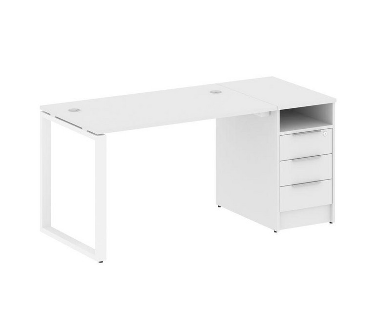 Metal System Рабочая станция с тумбой на О-образном м/к БО.РС-СТП-1.2 Белый/Металл Белый 1612*720*75