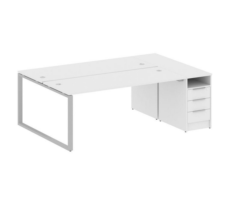 Metal System Рабочая станция с тумбой на О-образном м/к БО.РС-СТП-2.5 Белый/Металл Серый 2212*1475*7
