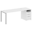 Metal System Рабочая станция с тумбой на П-образном м/к БП.РС-СТП-1.4 Белый/Металл Серый 2012*720*75