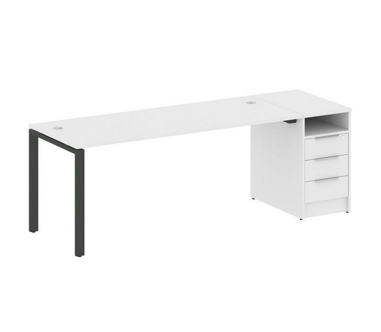 Metal System Рабочая станция с тумбой на П-образном м/к БП.РС-СТП-1.5 Белый/Металл Антрацит 2212*720