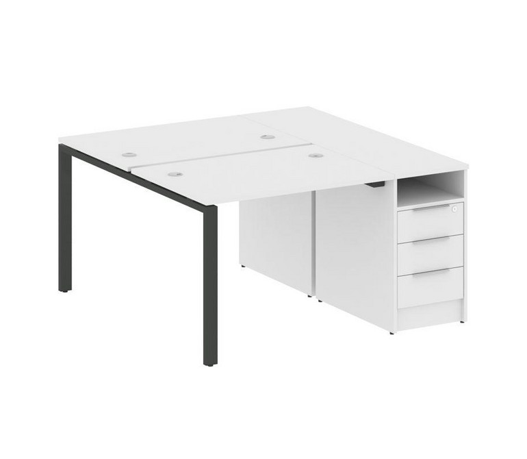 Metal System Рабочая станция с тумбой на П-образном м/к БП.РС-СТП-2.1 Белый/Металл Антрацит 1412*147