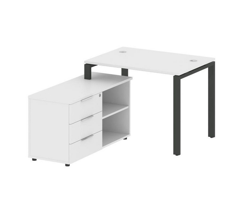Metal System Рабочая станция с тумбой на П-образном м/к БП.РС-СТС-2.1 (L) Белый/Металл Антрацит 1100