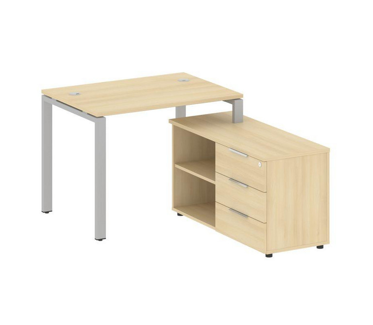 Metal System Рабочая станция с тумбой на П-образном м/к БП.РС-СТС-2.1 (R) Акация Лорка/Металл Серый