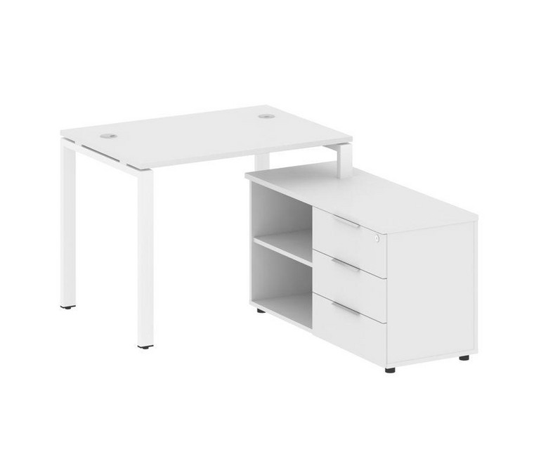 Metal System Рабочая станция с тумбой на П-образном м/к БП.РС-СТС-2.1 (R) Белый/Металл Белый 1100*15