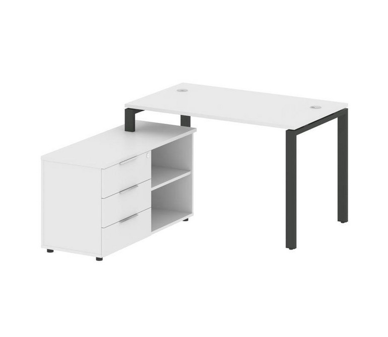 Metal System Рабочая станция с тумбой на П-образном м/к БП.РС-СТС-2.2 (L) Белый/Металл Антрацит 1300