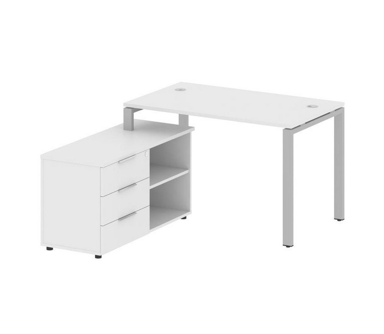 Metal System Рабочая станция с тумбой на П-образном м/к БП.РС-СТС-2.2 (L) Белый/Металл Серый 1300*15