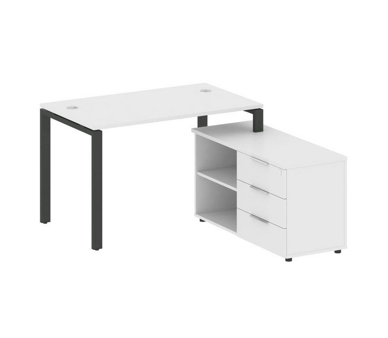 Metal System Рабочая станция с тумбой на П-образном м/к БП.РС-СТС-2.2 (R) Белый/Металл Антрацит 1300