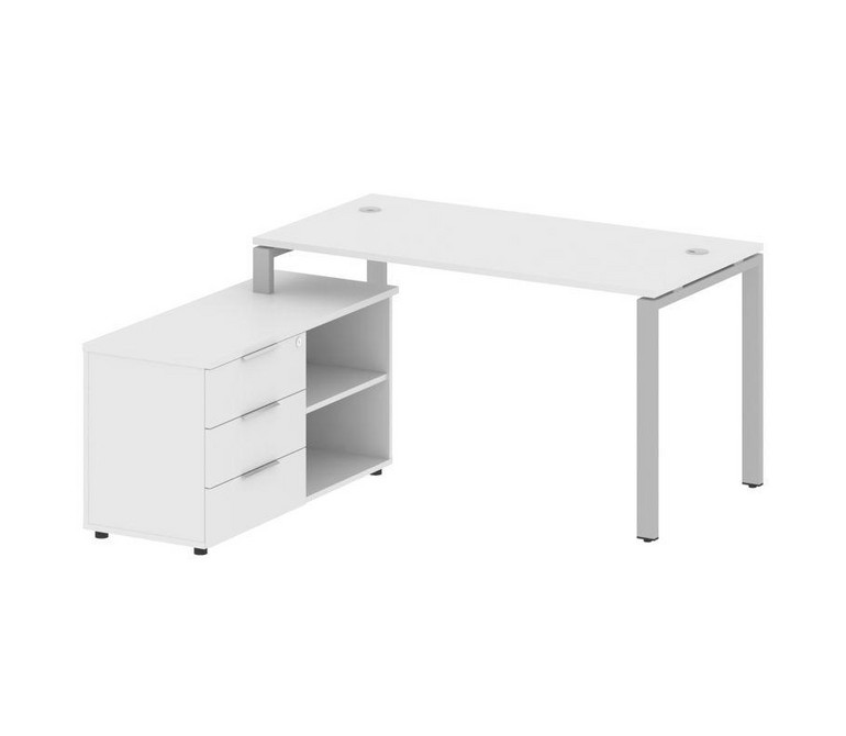 Metal System Рабочая станция с тумбой на П-образном м/к БП.РС-СТС-2.3 (L) Белый/Металл Серый 1500*15