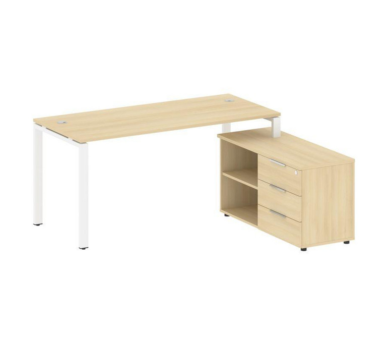 Metal System Рабочая станция с тумбой на П-образном м/к БП.РС-СТС-2.4 (R) Акация Лорка/Металл Белый