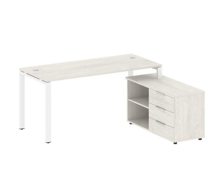 Metal System Рабочая станция с тумбой на П-образном м/к БП.РС-СТС-2.4 (R) Дуб Наварра/Металл Белый 1
