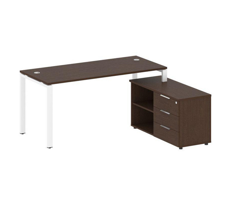 Metal System Рабочая станция с тумбой на П-образном м/к БП.РС-СТС-2.4 (R) Венге Цаво/Металл Белый 17