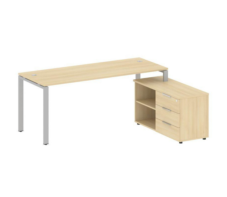 Metal System Рабочая станция с тумбой на П-образном м/к БП.РС-СТС-2.5 (R) Акация Лорка/Металл Серый