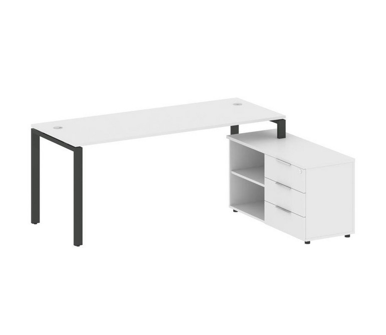 Metal System Рабочая станция с тумбой на П-образном м/к БП.РС-СТС-2.5 (R) Белый/Металл Антрацит 1900