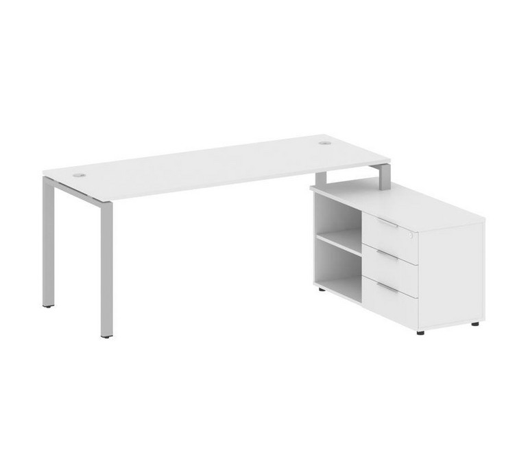 Metal System Рабочая станция с тумбой на П-образном м/к БП.РС-СТС-2.5 (R) Белый/Металл Серый 1900*15