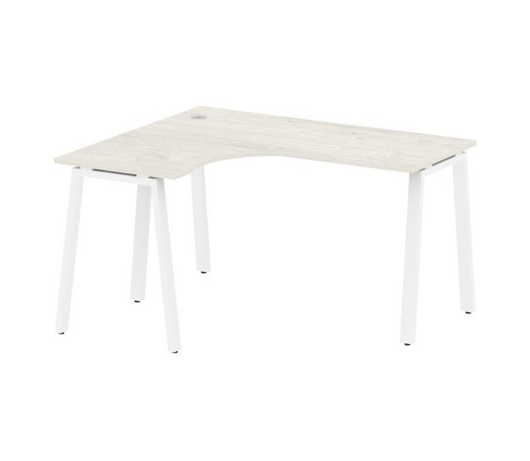 Metal System Стол криволинейный левый на А-образном м/к БА.СА-3 (L) Дуб Наварра/Металл Белый 1400*12