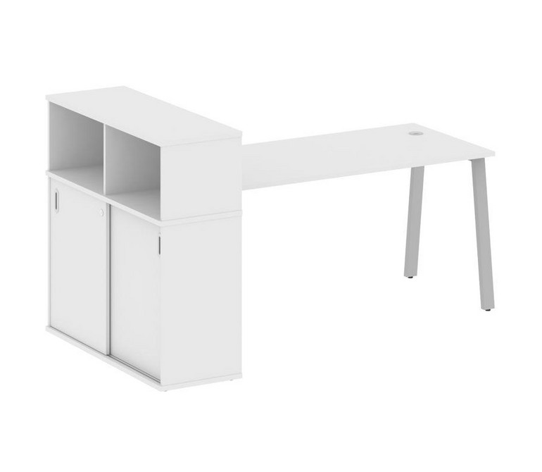 Metal System Стол письменный с шкафом-купе на А-образном м/к БА.РС-СШК-3.4 Т Белый/Металл Серый 2010