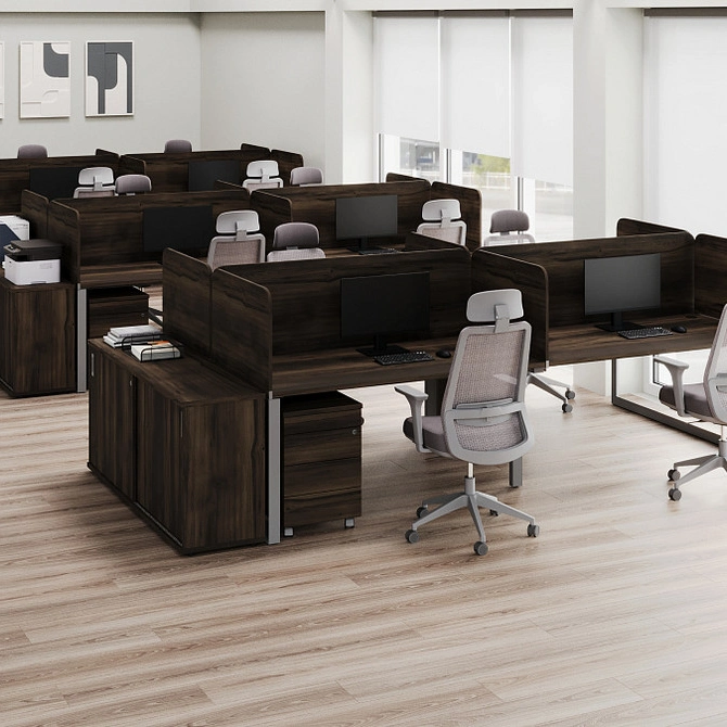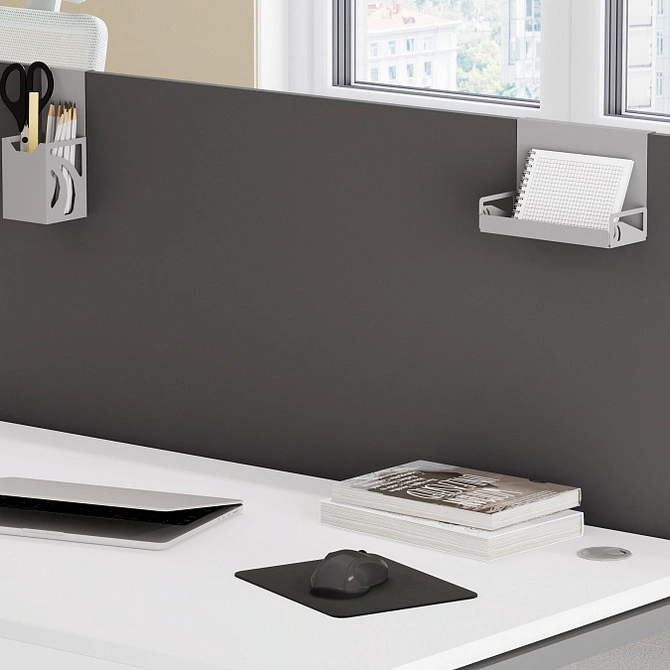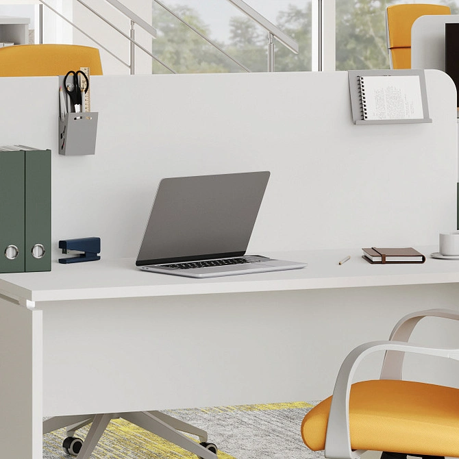 Когда вы решаете купить аксессуары для офиса в виде настольных экранов, вы получаете совместимость с любыми столами и рабочими станциями из нашего ассортимента (кроме серии Slim System), а также возможность интеграции с мебелью других производителей.