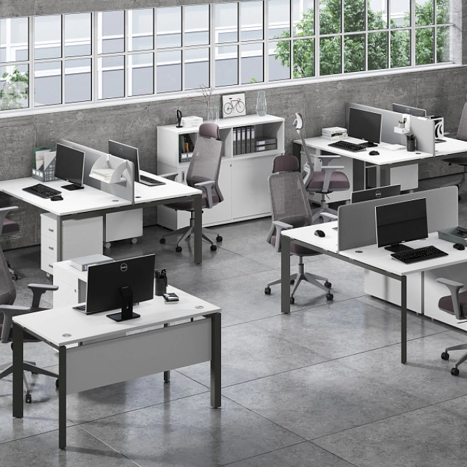 Onix - это серия с характером. Узнаваемый дизайн треугольных опор создает запоминающийся облик вашего офиса, а продуманная система комбинирования позволяет создавать гармоничные рабочие пространства любой конфигурации. Полный цикл оснащения — от отдельных рабочих мест до комплексных решений со шкафной группой.