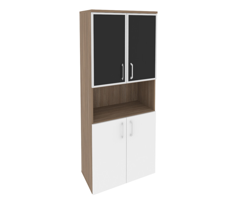 Onix Шкаф высокий широкий O.ST-1.4 R black Дуб Аризона/Белый Бриллиант/Cтекло Black 800*420*1977