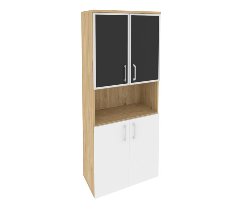 Onix Шкаф высокий широкий O.ST-1.4 R black Тиквуд Светлый/Белый Бриллиант/Cтекло Black 800*420*1977