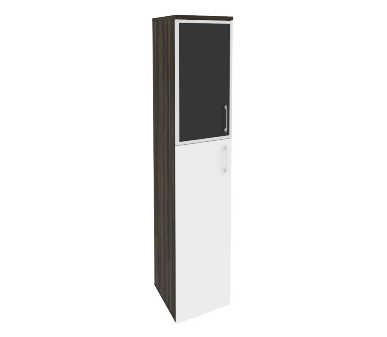 Onix Шкаф высокий узкий левый O.SU-1.7 R (L) black Дуб Мали/Белый Бриллиант/Cтекло Black 400*420*197