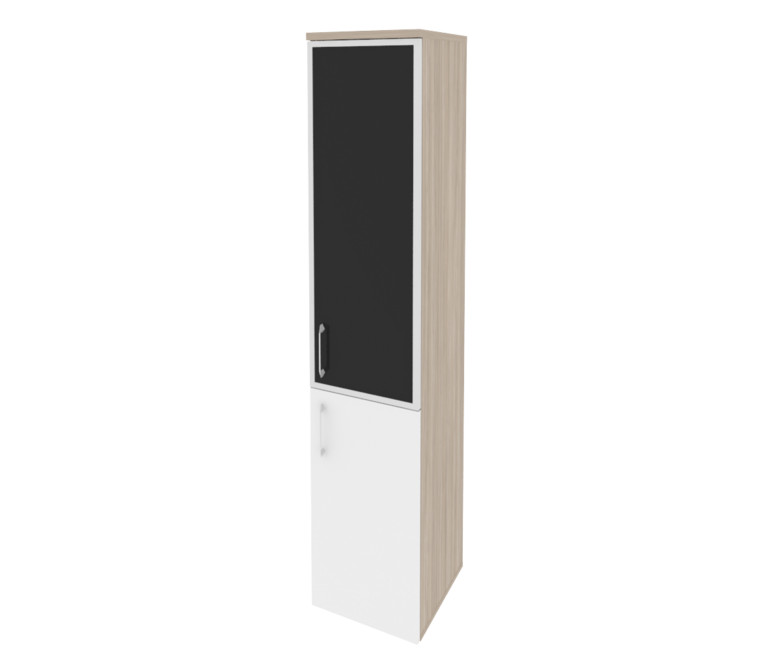 Onix Шкаф высокий узкий правый O.SU-1.2 R (R) black Дуб Аттик/Белый Бриллиант/Cтекло Black 400*420*1