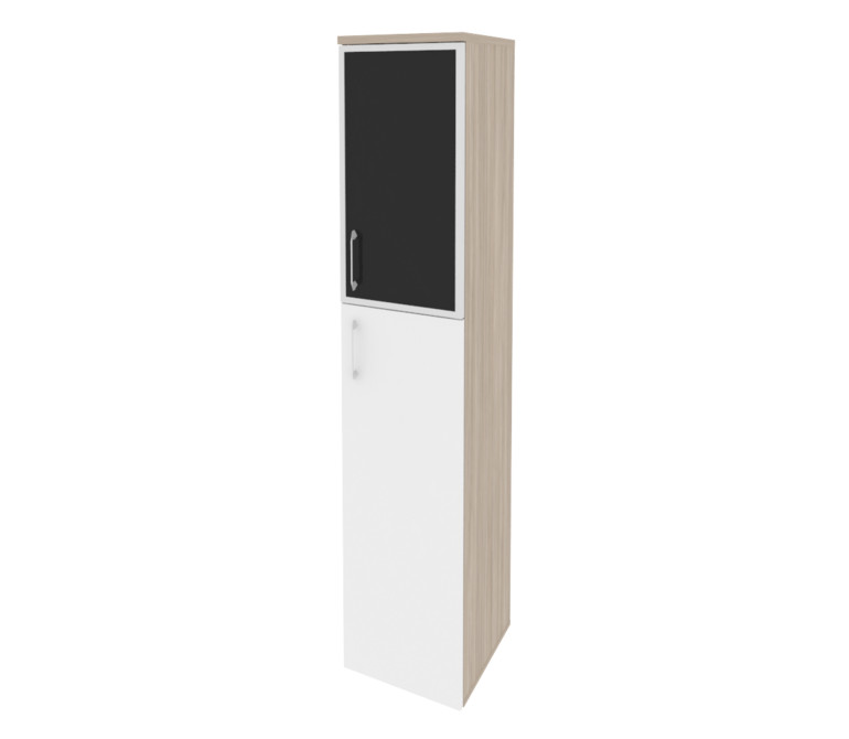 Onix Шкаф высокий узкий правый O.SU-1.7 R (R) black Дуб Аттик/Белый Бриллиант/Cтекло Black 400*420*1