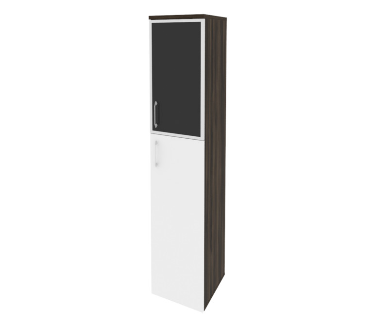 Onix Шкаф высокий узкий правый O.SU-1.7 R (R) black Дуб Мали/Белый Бриллиант/Cтекло Black 400*420*19