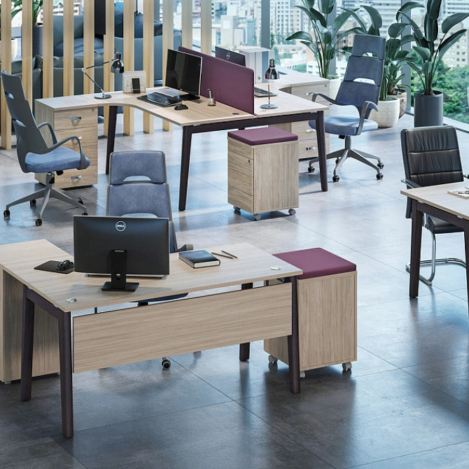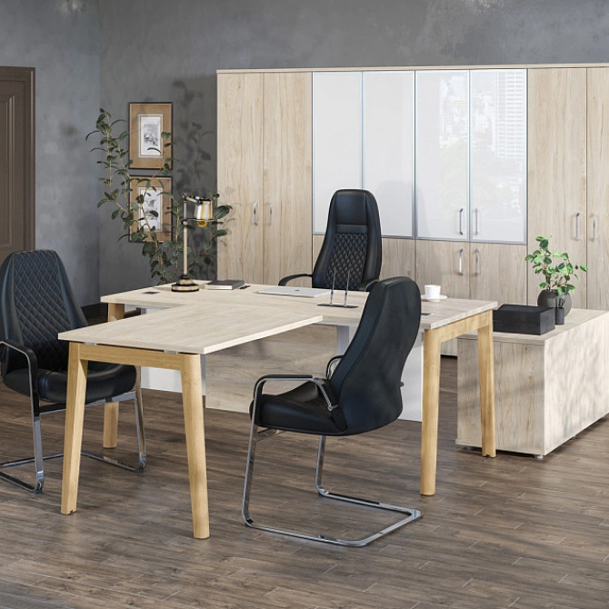 Onix Wood — это эксклюзивная серия с опорами из массива дуба, создающая атмосферу солидности и респектабельности. Натуральное дерево в сочетании с современными металлическими элементами формирует гармоничный дизайн, подчеркивающий статус вашей компании. Идеальное решение для кабинетов руководителей и переговорных комнат премиум-класса.