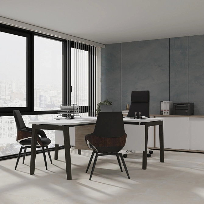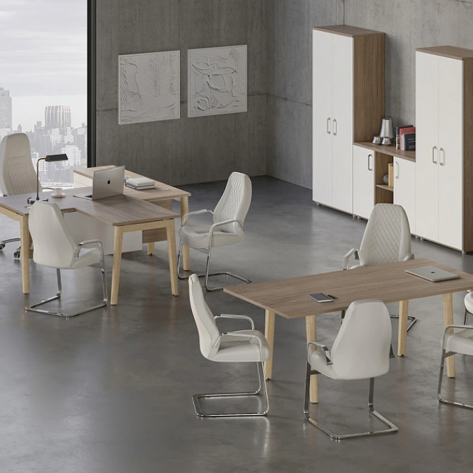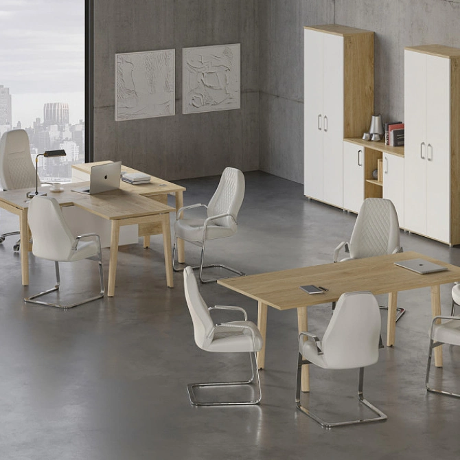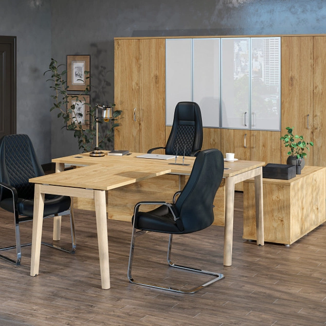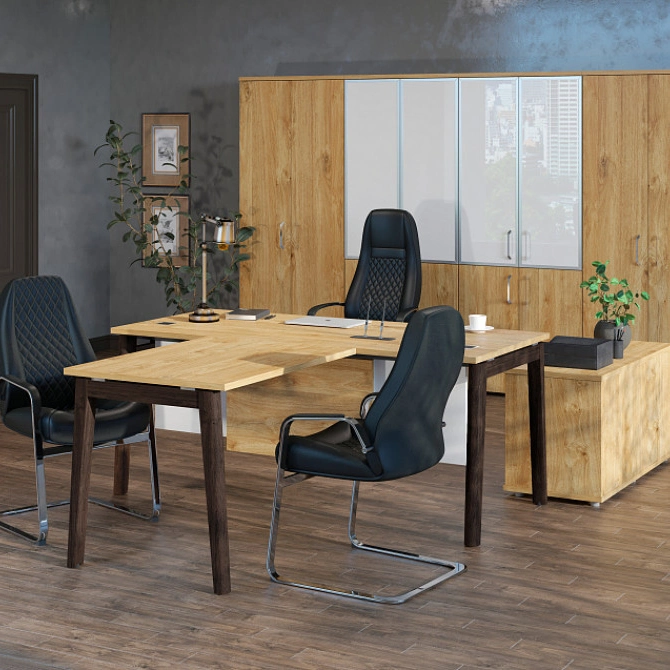 Купить офисную мебель, которая сочетает в себе современные тренды и вечную классику, — это просто с серией ONIX WOOD DIRECT от фабрики «Рива». Как официальный партнер и дилер, «Эволюция офиса» предлагает вам эксклюзивные решения для кабинета руководителя. Визитная карточка этой коллекции — мощные опоры из цельного массива дуба, которые привносят в рабочее пространство неповторимый природный шик и солидность.