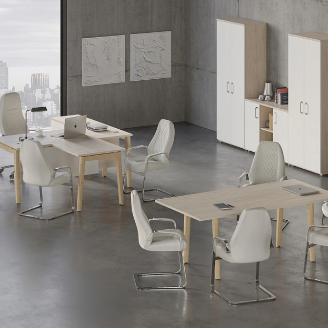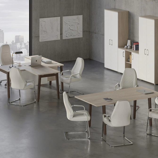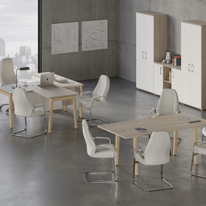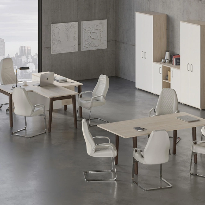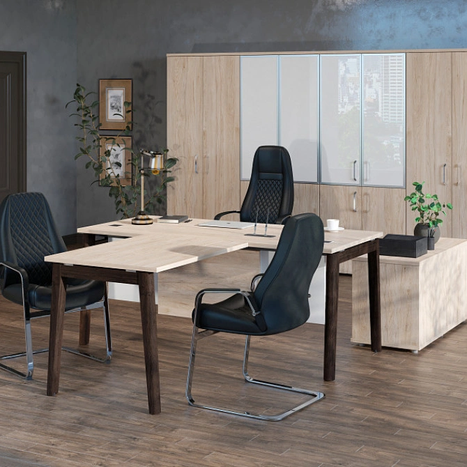 Полная комплектация под ваши нужды: Купить офисную мебель Onix Wood — значит получить готовую экосистему: столы, стандартные тумбы, шкафы и аксессуары идеально сочетаются между собой.