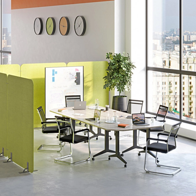 R-line Soft — это инновация в организации офисного пространства. Модель с повышенной толщиной 28 мм обеспечивает превосходную звукоизоляцию, создавая комфортные условия для переговоров и сосредоточенной работы. Стильные тканевые панели в 13 цветовых решениях и функциональная система креплений позволяют создать эргономичное пространство, где каждая деталь работает на продуктивность вашей команды.
