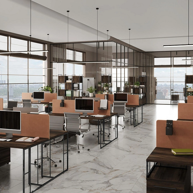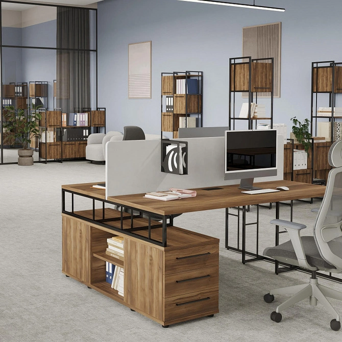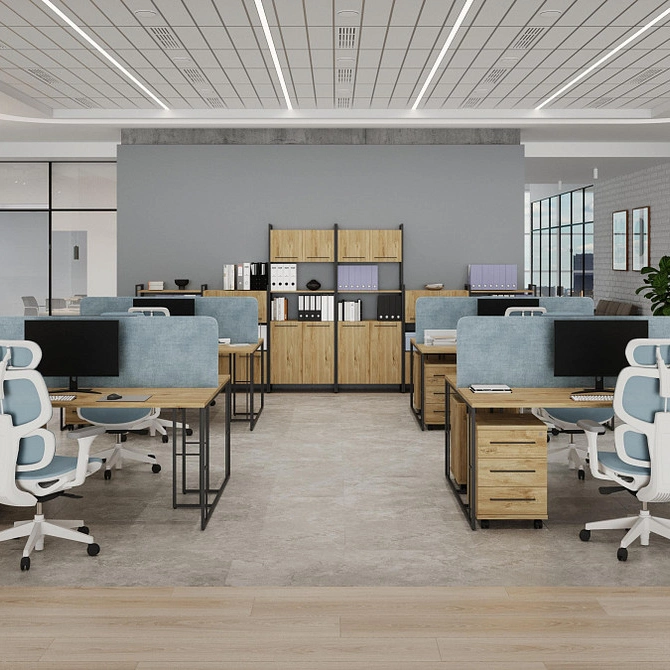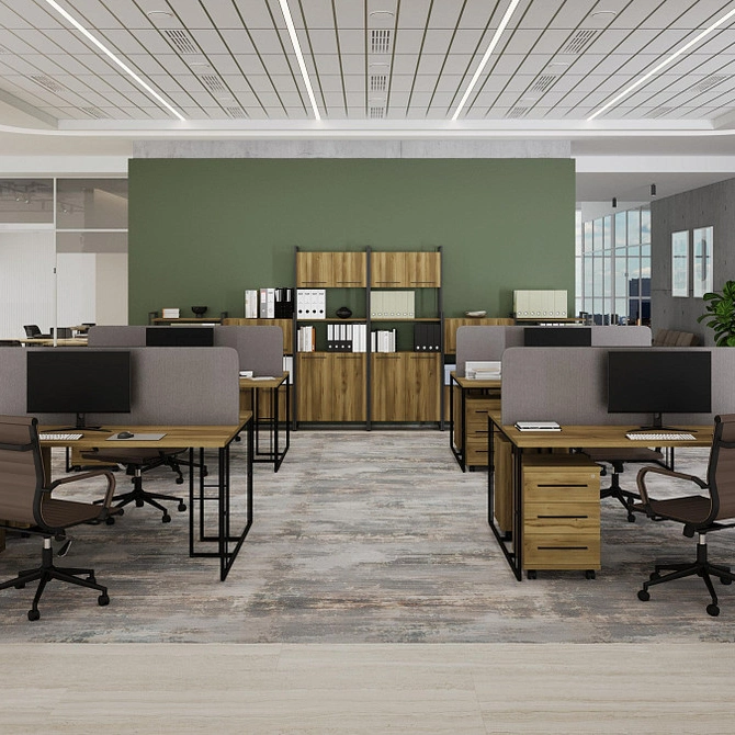 Единство стиля: Единая стилистика для кабинета руководителя и рабочих зон создаёт гармоничную и профессиональную среду, укрепляя корпоративный дух.