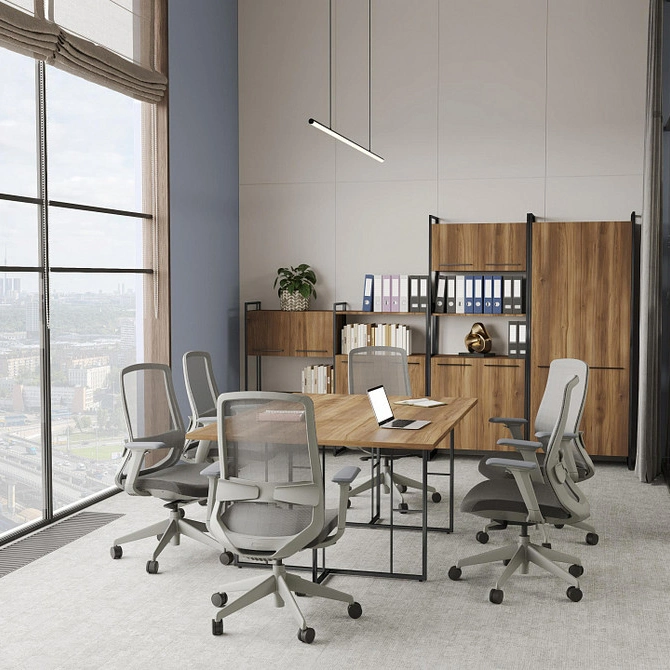 Создайте гармоничную и профессиональную атмосферу с мебелью Rift. Единая стилистика для кабинета директора и рабочих мест укрепляет корпоративный дух и формирует целостный образ компании. Трендовый дизайн подчеркнёт статус и современный подход вашего бизнеса.