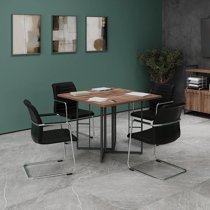 Металлокаркас: Прочные опоры из трубы 20x20 мм с декоративными вставками 10x10 мм (для столов) и 15x15 мм (для тумб).