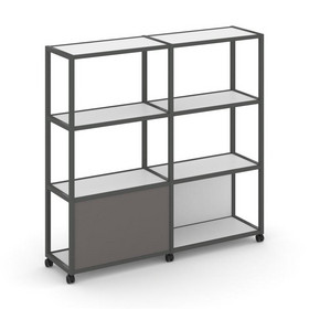 Стеллажи Shelf Mobile созданы для повышения эффективности работы офиса. Усиленные колеса позволяют легко зонировать опенспейсы, обустраивать переговорные уголки и оперативно реорганизовывать пространство без сложных перестановок.