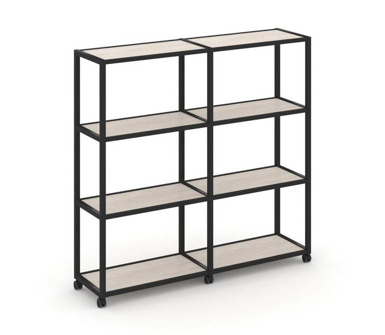 Shelf Mobile Стеллаж 4 уровня 2 секции VR.LT-STK-411.06 Денвер Светлый/Металл Черный 1170*400*1523