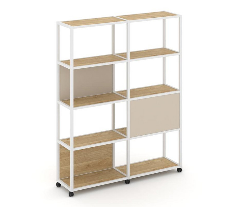 Shelf Mobile Стеллаж 5 уровней 2 секции VR.LT-STK-512.08 Тиквуд Светлый/Металл Белый/W-04 1570*400*2