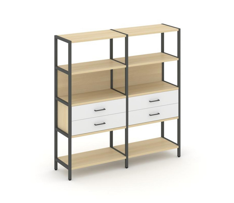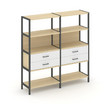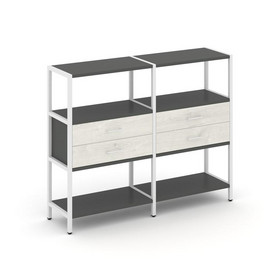 Shelf System Двухсекционный стеллаж четырехярусный с ящиками SN.STM-422 Акация Лорка/Белый/Металл Ан