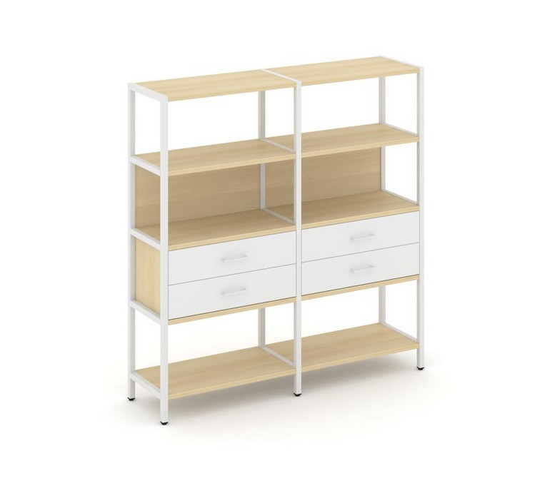 Shelf System Двухсекционный стеллаж четырехярусный с ящиками SN.STM-422 Акация Лорка/Белый/Металл Бе