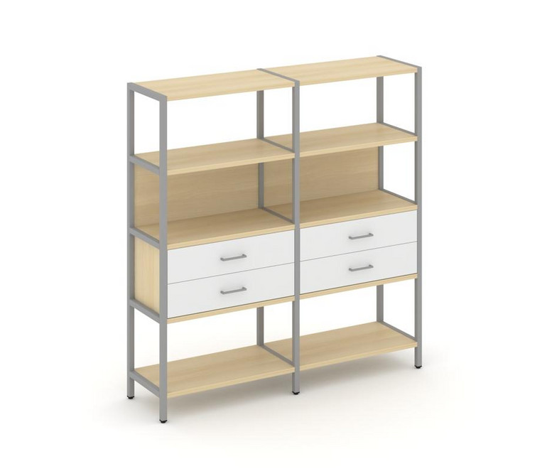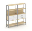 Shelf System Двухсекционный стеллаж четырехярусный с ящиками SN.STM-422 Акация Лорка/Белый/Металл Се