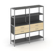 Shelf System Двухсекционный стеллаж четырехярусный с ящиками SN.STM-422 Антрацит/Акация Лорка/Металл