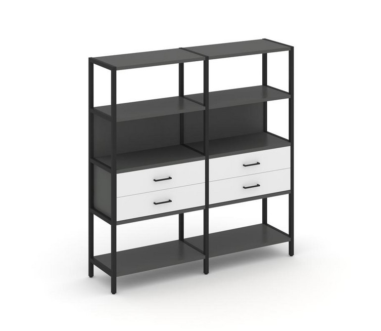 Shelf System Двухсекционный стеллаж четырехярусный с ящиками SN.STM-422 Антрацит/Белый/Металл Черный