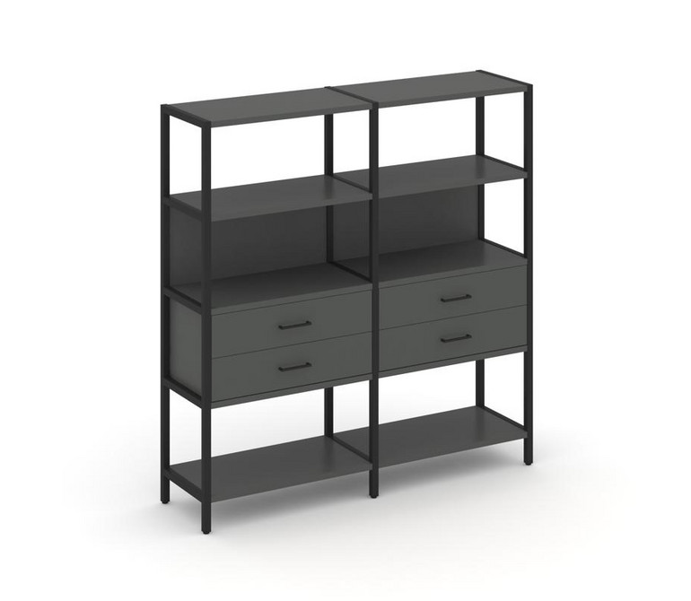 Shelf System Двухсекционный стеллаж четырехярусный с ящиками SN.STM-422 Антрацит/Металл Черный 1590*