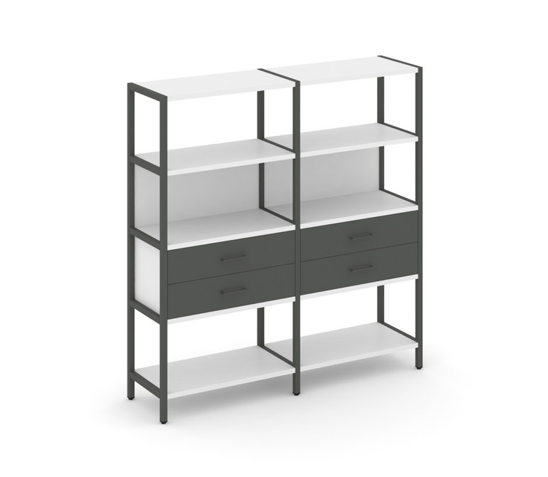Shelf System Двухсекционный стеллаж четырехярусный с ящиками SN.STM-422 Белый/Антрацит/Металл Антрац