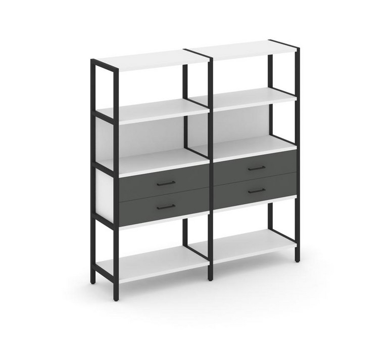 Shelf System Двухсекционный стеллаж четырехярусный с ящиками SN.STM-422 Белый/Антрацит/Металл Черный